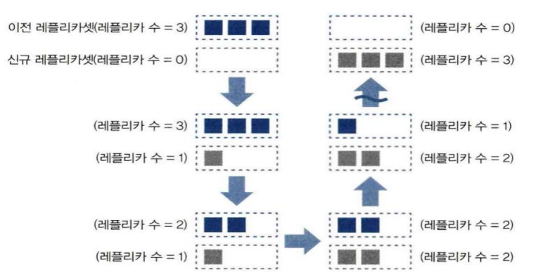 : 새 버전의 애플리케이션을 배포할 때 새 버전 Pod는 하나씩 늘려가고 기존 버전 Pod는 하나씩 줄여나가는 방식